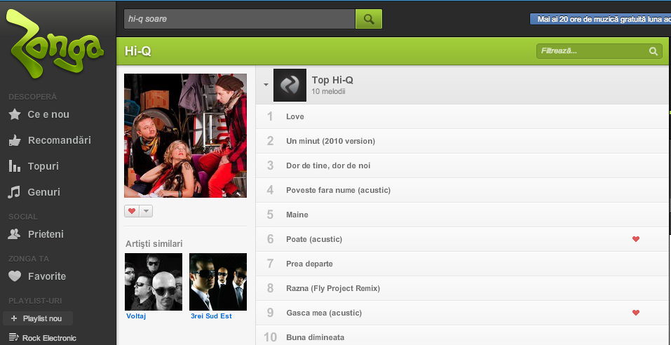 Playlist la infinit cu artistul preferat